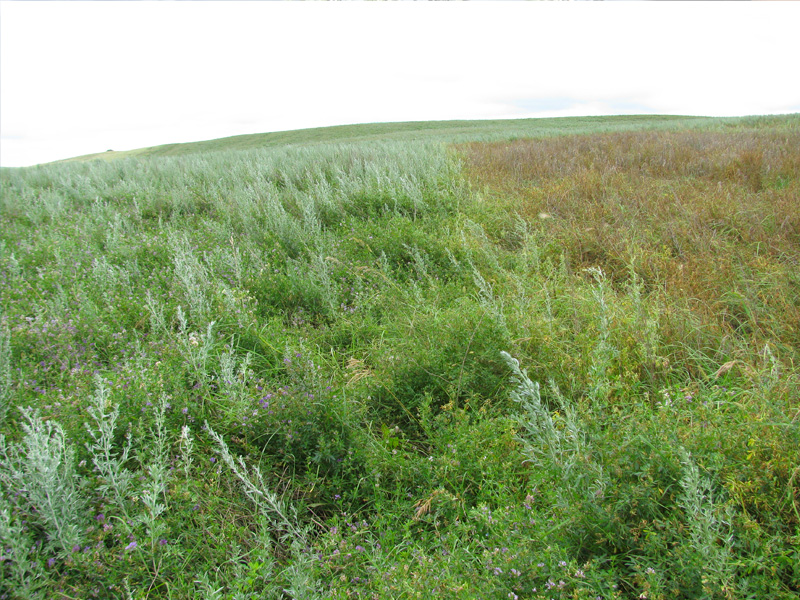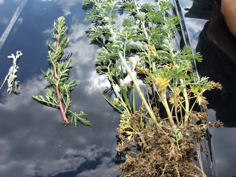 On July 14th 2015 a group of interested farmers met at Gary and Pam Welter's property to look at an ADOPT (Agriculture Demonstration of Practices & Technologies) site which was examining Absinthe (wormwood) control. Our group discussed the merits of the applications. Was it better to just allow the alfalfa to compete with the wormwood with no herbicide? The complicating factor was there were above average growing conditions on this property after the herbicide applications which would have given the alfalfa an added boost in growth.